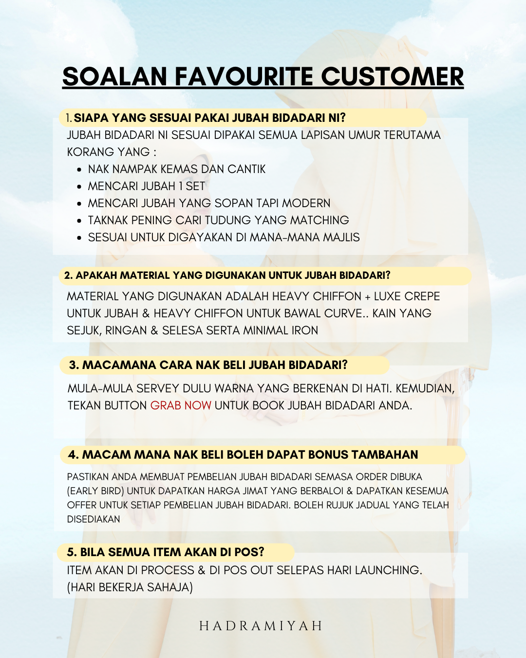 PASTIKAN ANDA YANG TERAWAL GRAB JUBAH BIDADARI UNTUK DAPATKAN HARGA PROMO INI!