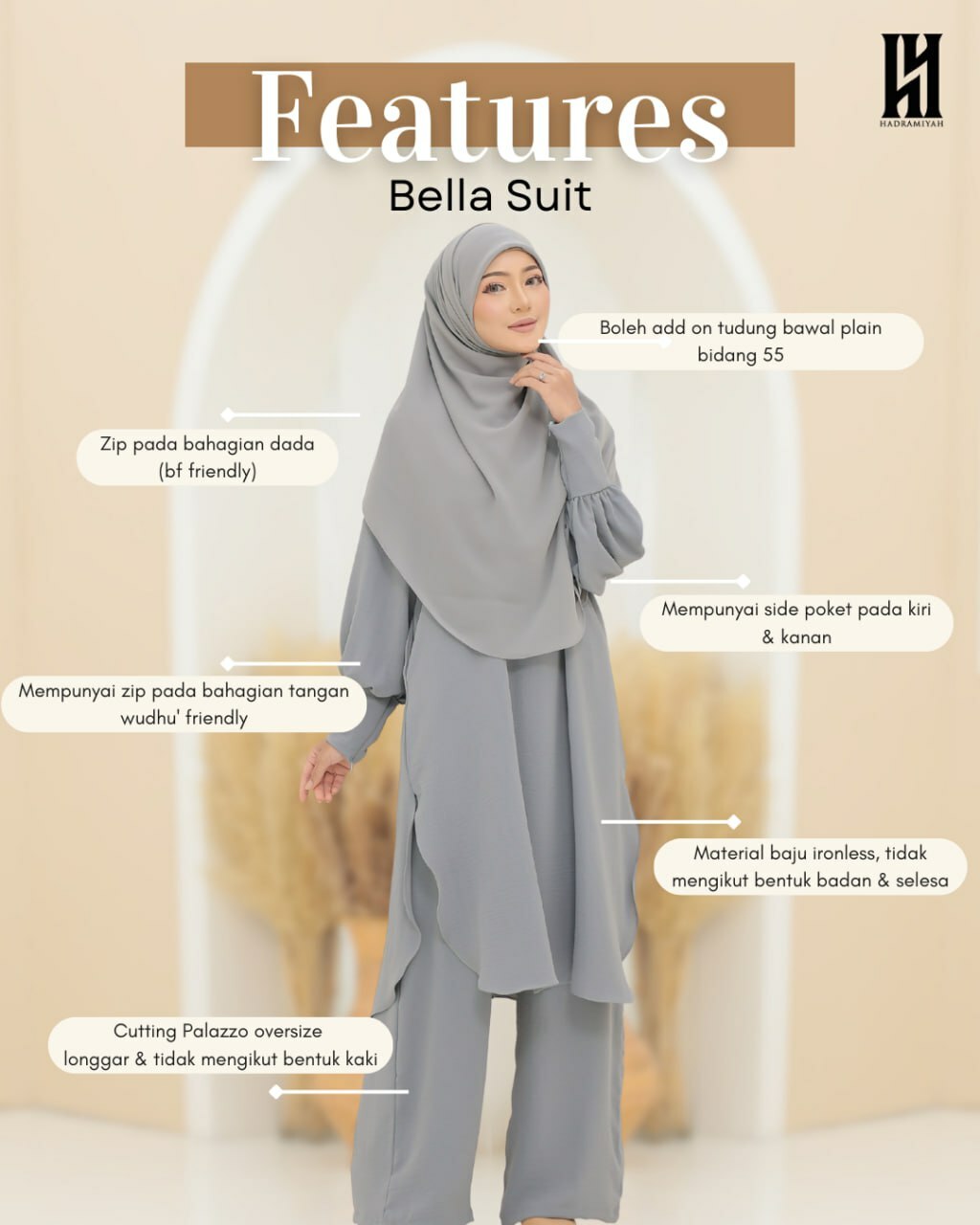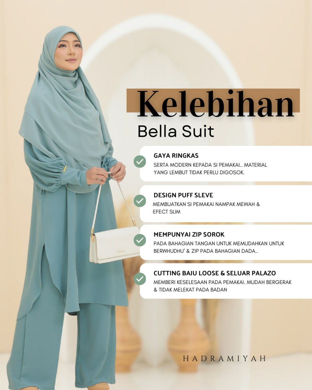 Close up detailing COMBO BELLA SUIT yang buat anda in love!