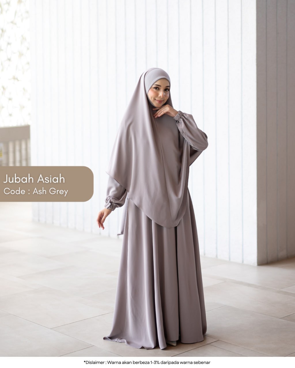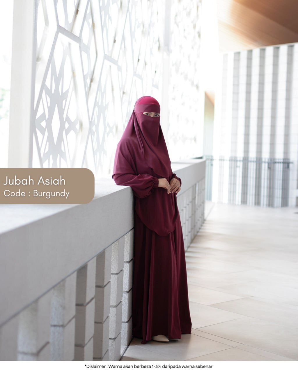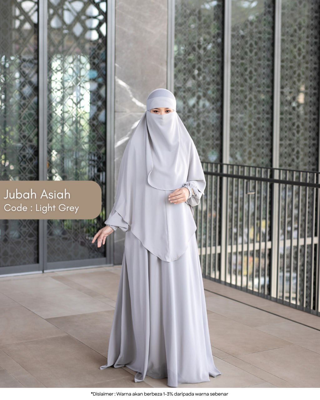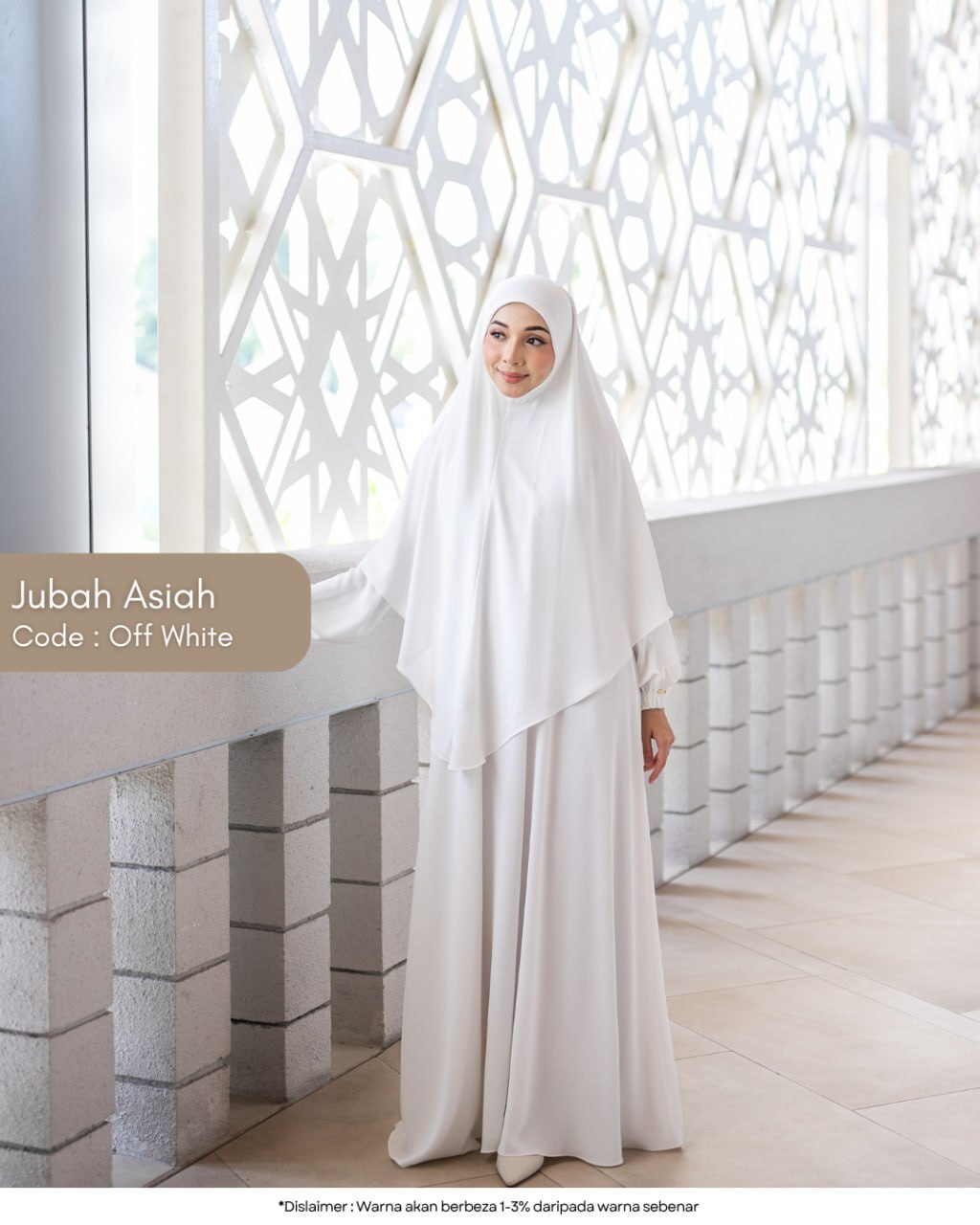 Full look Jubah Asiah — cukup manis, anggun dan sopan digayakan.