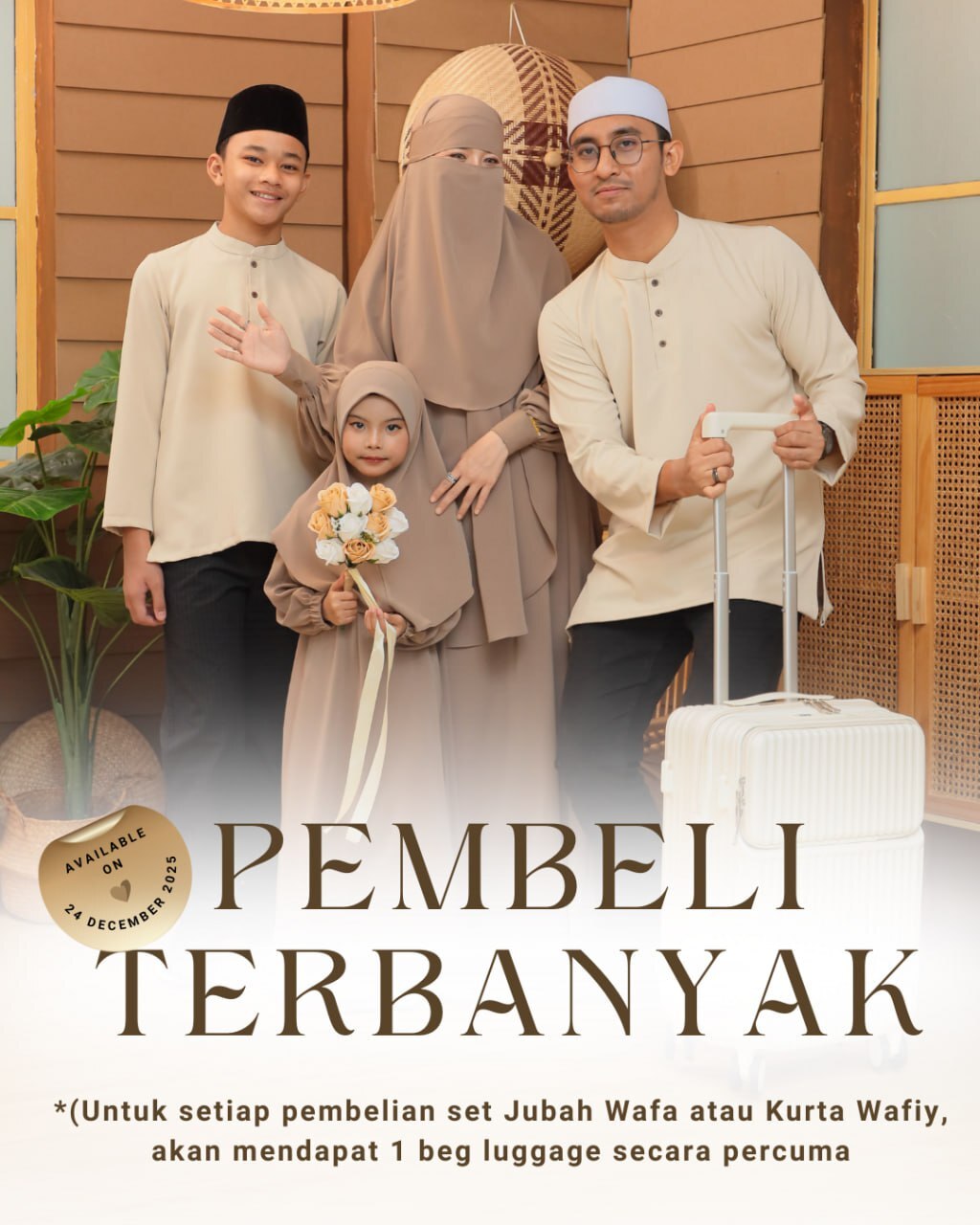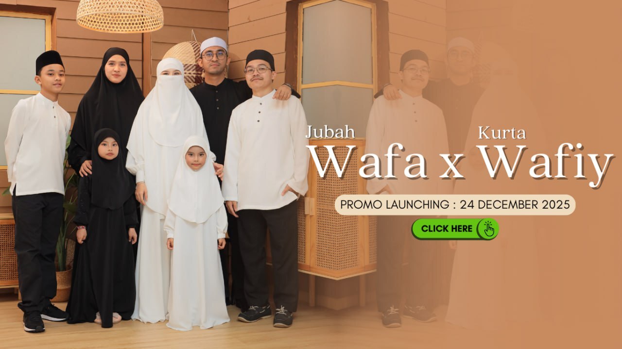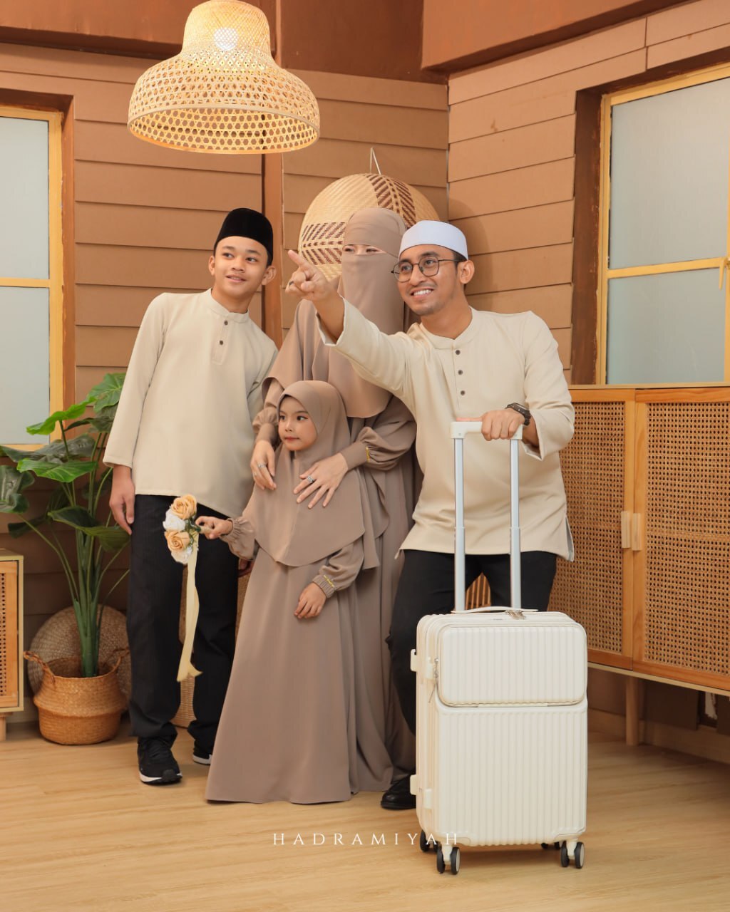 Jubah Wafa yang anggun dipadankan dengan Kurta Wafiy yang kemas, jelas tampil satu keluarga bahagia.