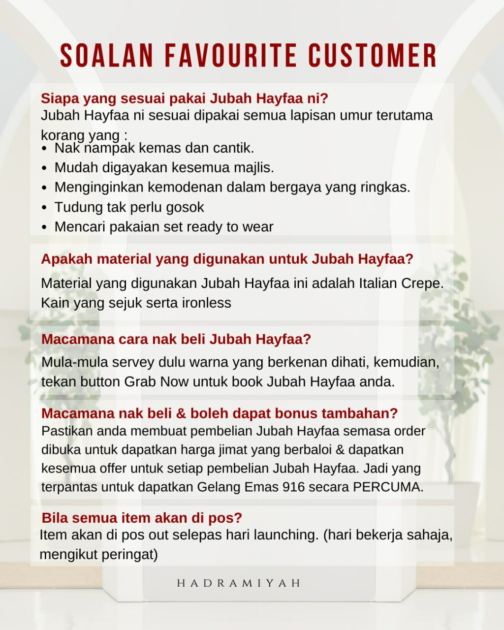 JUBAH HAYFAA PILIHAN TERBAIK UNTUK ANDA !